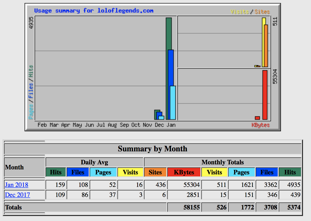 < All Topics Main Site Statistics Webalizer Statistics Print Webalizer Statistics1. Login into DirectAdmin CP 2. Click on the Site Summary/ Statistics/ Logs icon, 3. In the main Statistics menu, click on the appropriate domain name to launch Webalizer. Please note that your site must be up for 24 hours and have some log activity before Webalizer statistics will become active. At the first Webalizer screen, you will see a chart (like the one above) and a list of months in a table below. Webalizer statistics are very detailed and will provide a great deal of information about site traffic, most requested URLs, exit points, location of visitors, and much more.